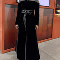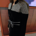 A black velvet Blazer style Kaftan with elegant embellished shoulder details and a soft waist tie that shapes the silhouette. Designed with a relaxed, flowing cut that combines traditional elegance with a modern touch.