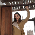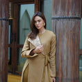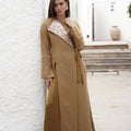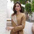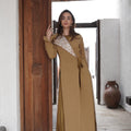 A two-piece dara kaftan featuring a sleeveless inner dress with subtle cut-out detailing, paired with a matching wrap-style blazer finished with elegant textured accents. Designed for comfort and refined Ramadan elegance.