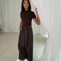 Contemporary baggy pants with a statement belt and dramatic wide fit.